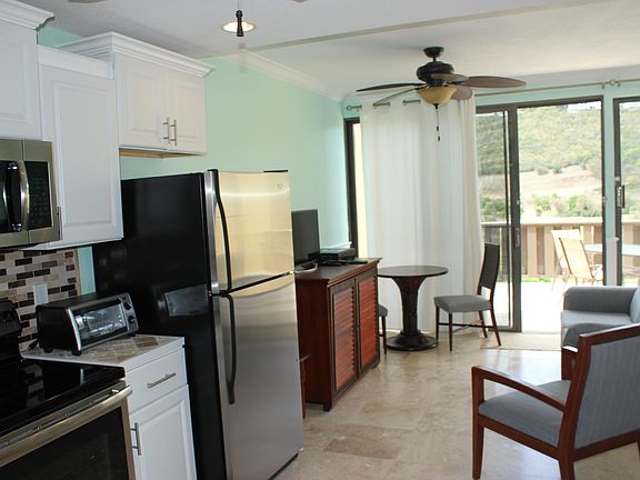 A great complex of 31 condominiums on the cool northside at gated Mahogany Run. Fairway Village overlooks the former Mahogany Run Golf Course and a small water view to Lovenlund Bay. The complex offers a beautiful pool and you are just 5 minutes from Mahogany Run. This studio condo was completely renovated in 2015 and has been steadily rented since completed in early 2016. Great large patio.