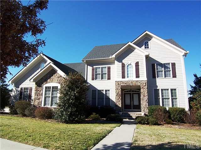 Spacious, custom 2-story home on the 13th hole of the Heritage Wake Forest golf course! This fabulous home features a 3-car Garage, huge Loft, huge 4th Bedroom that could be a Bonus Rm, and stunning views of the golf course! 4BR/3.5BA/3760sf plus 597sf unfinished walk-up Attic and 337sf unfinished walk-in Attic w/tons of storage space. Maintenance-free stone/hardiplank exterior, attached 3-car Garage, The spacious Deck overlooks the lg, treed backyard and offers Golf Course views. Stray golf balls have never been a problem, as the yard is located just far enough away from the green. Lovely hardwood floors, tall ceilings, heavy crown molding, columns & arched-top windows. Cov’d front Porch leads to gracious Foyer which is open to both the Living Rm/Study and to the lg formal Dining Rm w/coffered ceiling & paneled wainscot. Straight ahead is the lg vaulted Family Rm w/gas log FP w/black granite surround flanked by cabinetry, CF, Butler’s Pantry w/cabinets, wine rack, granite counter & sink, and arched windows overlooking the backyard. It is completely open to the fabulous Kitchen w/granite ctrs, lots of 42” cherry cabinets, SS appls including smooth-top range, MW & DW, walk-in Pantry, tile backsplash, recessed lighting and angled eat-at bar. Nearby is the sunny Bfast area that accesses the Deck, and the utility hall (that accesses the Garage) w/lg desk & storage cabinets, lg closet & Laundry Rm w/shelving & sink. Also on this level is the spacious vaulted Master Bedroom w/neutral carpet, CF, 2 lg WICs & lg tiled Bath w/separate granite-topped vanities/sinks, lg tiled shower, deep soaking tub & priv toilet rm. Upstairs, there is a huge Loft w/neutral carpet & built-in desk, and 3 spacious Bedrooms w/lg closets (2 have WICS), CF & neutral carpet. Bedrooms 2 & 3 share a lg tiled buddy Bath w/separate vanities/sinks & linen closet. Bedroom 4 is huge and could be used as a Bonus Rm w/its private tiled full Bath. There is a spacious walk-in Attic off this room, and up the stairs is an even larger Attic space that could be finished.