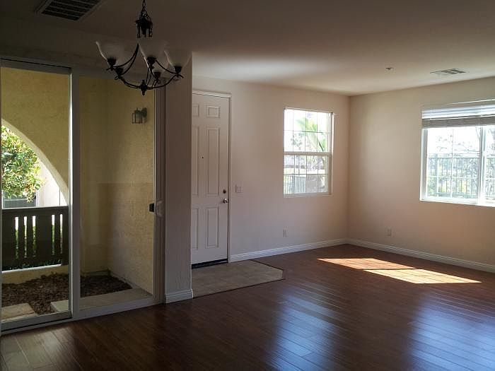 Newly remodeled tri-level townhome, high ceiling, beautiful laminate flooring and tiles throughout, features downstairs kitchen, dining and living room, a powder room and a front porch, second floor two large bedrooms and a full bath, third floor the master suite with tree-line and rooftop views, 2 car garage with direct access to the townhome. Newer flooring, newer paint, 1 year old central A/C, newer appliances including side by side refrigerator, full size washer & dryer in closet. Perfect for small families or professionals. The complex offers privacy and activities: beautiful swimming pools and playgrounds, basketball, soccer, etc. The community of Otay Ranch has tons to offer, near great new elementary, middle & high schools, shopping centers, restaurants and freeways. Available for 1 year+ lease, $3400 rent excluding utilities, additional pet deposit and fee may apply. 1 month rent security deposit required. Military discount available. Owner pays for trash. Tenant responsible for gas, electricity and water. Additional pet deposit and fee may apply. Military discount available.