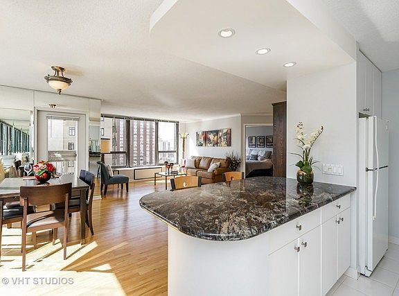 DRAMATIC CITY & LAKE VIEWS FROM THIS UPDATED, MOVE-IN CONDITION 2 BED/2 BATH W/BALCONY IN THE GOLD COAST! SPACIOUS OPEN FLOOR PLAN W/TREMENDOUS CLOSET & STORAGE SPACE. FEATURES INCLUDE HARDWOOD FLOORS THROUGHOUT, NEW FULL-SIZE WASHER/DRYER, NEW HEATING & AIR CONDITIONING UNITS, CROWN MOLDINGS & FRESH CUSTOM PAINT. OPEN KITCHEN W/BREAKFAST BAR, GRANITE COUNTERS & EXTRA PANTRY CLOSET. LARGE MASTER BEDROOM SUITE W/OVERLY ABUNDANT CLOSETS, BUILT-IN DRESSER DRAWERS, MASTER BATH W/GRANITE COUNTERS, LINEN & UTILITY STORAGE. THE FULL SIZE WASHER/DRYER IS CONVENIENTLY LOCATED IN THE MASTER BATH. SECOND BEDROOM W/FRENCH DOORS & SECOND BATH W/WALK-IN SHOWER. ENJOY EXCEPTIONAL SOUTH, EAST & WEST VIEWS FROM THE BALCONY WHILE RELAXING & GRILLING. DEEDED ATTACHED GARAGE PARKING SPACE ADDITIONAL $55K. FULL SERVICE AMENITY BUILDING W/24 HR. DOORMAN & SECURITY, OUTDOOR POOL, SUNDECK, PARTY ROOM, EXERCISE ROOM, BIKE ROOM, STORAGE LOCKER, DAY SPA AND FULL SERVICE DRY CLEANER. LOCATION, LOCATION, LOCATION!