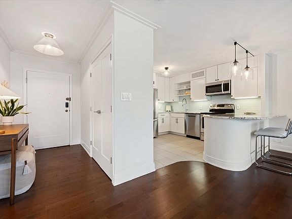Just moments from Oak Street Beach, the Chicago Lakefront Trail, Lincoln Park, and Gold Coast's best shopping, dining, and entertainment, Unit 1502 at Ritchie Court offers a truly one-of-a-kind floor plan. Originally two studios combined, this oversized one-bedroom features a bright, open layout with beautiful natural light (especially in the afternoons), three oversized closets, and is one of the rare one-bedroom units in the building and in Gold Coast with full-size in-unit laundry. The kitchen features all stainless steel appliances, ample storage, and a pantry closet. The combined living and dining area offers hardwood laminate flooring and an extra-wide floorplan allowing space to work from home. The primary suite accommodates a king-size bed and includes an impressive 14-foot-long closet. The en-suite bathroom features a marble shower, vanity with ample counter space, a linen closet, and a stackable washer and dryer. This home has been lovingly taken care of, with major updates occurring in 2023: popcorn ceiling removal, 7ft door replacement, and installation of baseboard and crown molding. The dishwasher and A/C unit in the living room were both upgraded in 2025. 1313 Ritchie is a professionally managed, full-service building offering 24-hour door staff, a fitness center, outdoor pool deck, party room, in-house hair and nail salon, and on-site dry cleaning. The building is well maintained and has completed several major updates, including a pool renovation in 2023, a full common area hallway remodel in 2025, and riser replacement in 2025. One deeded parking space, #328, is available for purchase in the attached heated garage for 35,000. The unit includes two storage cages. Monthly HOA total is 1,136.12, broken down as follows: 939 unit, 115 parking, 34 internet, and 48 cable. The seller currently pays 322.21 per month for a special assessment, which will be paid in full at closing. Maximum of 2 pets per unit, 50 lb weight limit. TV and two scones on either side of TV excluded.