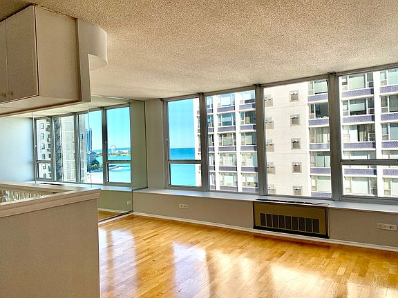 Rarely available One Bed/One Bath condo nestled in the tree-lined heart of Chicago's Gold Coast neighborhood. Ready for immediate move in, featuring hardwood floors & newly painted with abundant closet storage throughout. White kitchen & breakfast bar opens to the sunny & spacious living room with stunning views of Lake Michigan, North Avenue Beach and Navy Pier. Upgraded bath & kitchen, dining nook and bedroom w/French doors and able to accommodate a queen sized bed. On-site and nearby rental parking available. Walk to Oak Street & North Avenue Beaches, Michigan Ave, Rush St, the Red Line & public trans. Full amenity building w/24 hour doorman, outdoor pool, fitness room, bike room and party room. Convenient Full Service Spa and Dry Cleaners on-site. Location, Location, Location!