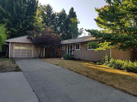Cute 50's Home, Ready to Become Mid-Century Modern! Super single-level layout with tile, hardwood, big windows, updated heat system, eat-in kitchen, spacious living room, ceiling fans, over-sized covered patio and extra large lot with towering trees and mature landscaping. Detached single garage with room for a small shop space. GPID irrigation. Great location, has easy access to schools and shopping. Well priced for the upgrade enthusiast!