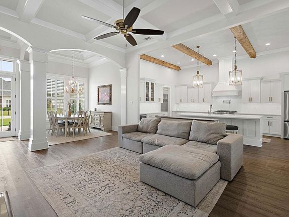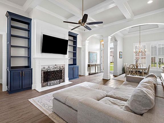 Beautiful 4 bedroom 3 bath home in the secluded neighborhood of Spring Haven in Madisonville. Split floor plan with the primary bedroom and one bedroom on one side and the other two bedrooms on the opposite of the home. Open kitchen and living room with wood beams, coffered ceiling and an accent brick wall. Gorgeous is an understatement. Primary bathroom has free standing tub, glass enclosed shower and a double vanity. Custom wood worked wall and double trey ceiling in the primary bedroom. Outdoor space is like you're on vacation all year round. Beautiful outdoor kitchen has everything one needs to make the most out of entertaining. Beautiful built in pool with a privacy fence behind it for more of that secluded feeling. Last but not lease, there is a matching shed with white Hardi siding. Plantation shutters throughout. There is a safety fence in the shed for the pool that will go with the home.