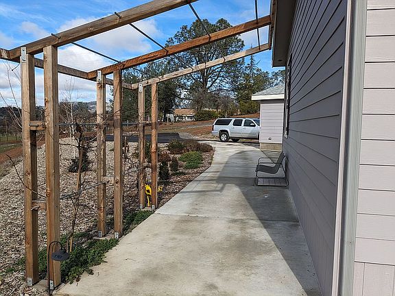 Enjoy outdoor living in the beautiful Siera Foothills. Located on 3 picturesque acres in Copperopolis, this 1620 square foot 3-bed, 2-bath single level home is move-in ready. Drive up to the garage on a paved driveway with extra parking space for your boat or RV. Entering the home, you will find an open concept with 9-foot ceilings throughout, a split bedroom design, including a flex room. The L-shaped kitchen has shaker cabinets, solid surface countertops, a large island, pantry, upgraded appliances, and reverse osmosis water filtration system. Off the dining area, step through the 8-foot-tall French doors leading to the upper side patio and a larger entertainment area on the lower level. The master bedroom is equipped with his and her walk-in closets, an ensuite with a soaking tub, double sinks, a separate toilet/shower room, and private access to the back patio where you can sit under the louvered gazebo to watch hummingbirds at their feeder. Near the two spare bedrooms, the second walk-through bath joins the laundry/mud area with an exit to the side patio and access to the unattached oversized double car garage. This property has two matching 8x14 foot sheds for crafting or tools. Stroll from the house around the landscaped grounds on concrete walks and steps leading to the custom chicken coop and fruit tree orchard. As part of Copper Cove HOA, you have access to the Black Creek Community Center and Park and its walking and equestrian trails--all located just across the meadow. In addition, you have access to Lake Tulloch at Kiva launch. Bring your offer and let’s make a deal—this property won’t last long.
