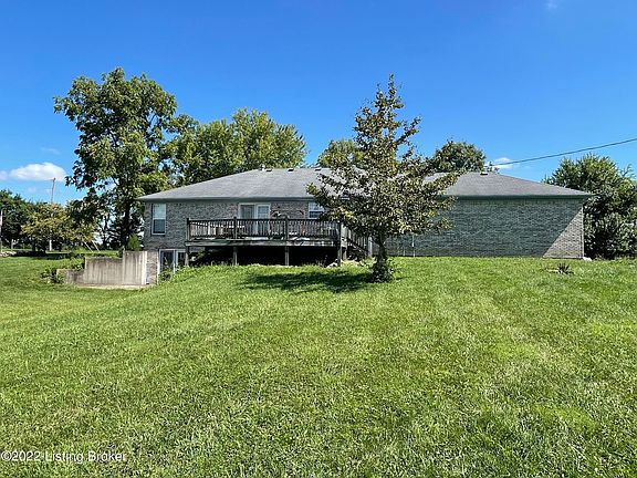 Situated on 1.27 scenic acres just minutes from historic downtown Lagrange, this all brick ranch home is ready for a new owner. Built in 2001, this home can reach its full potential with some manageable renovation. The cozy front porch leads into the great room with vaulted ceiling and central brick gas fireplace. An adjoining kitchen + dining area leads to a rear deck overlooking the rolling acreage. The large primary suite includes full bath with jetted tub, double vanity and separate shower. Two bedrooms and full bath complete the 1st floor. The walk-out basement has great finish potential, with rough-in plumbing for a bonus bathroom. This property also offers a large barn with electric, located adjacent to the main house. Updates include new furnace + AC in 2018.