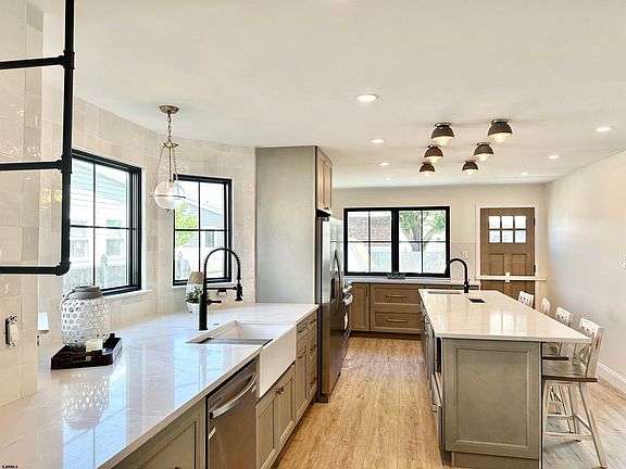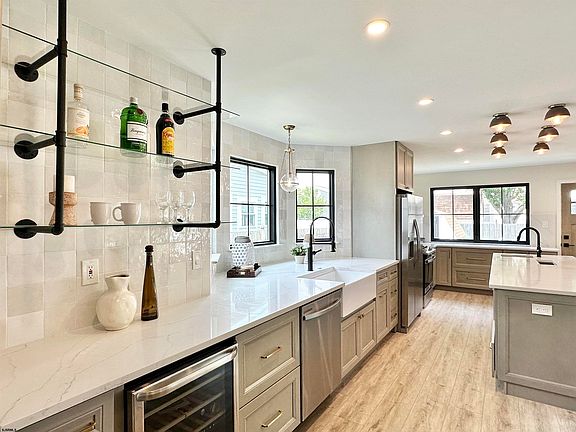 Look no further- a rare opportunity to purchase a move in ready, new construction look for under $1 million! Welcome to 1313 Ray Ave located in the golf course neighborhood of Brigantine. This GORGEOUS fully renovated property was professionally designed by Lux-Living and offers the option to purchase fully furnished. Talk about curb appeal and style both inside and out! It's modern farmhouse exterior with new black pella windows and board and batten siding is complemented by lovely landscaping and a covered front porch. When you enter the home you'll find a spacious living area with vaulted ceilings which leads to a massive designer kitchen. The kitchen features all of the bells and whistles from stainless steel appliances including a gas range, pot filler, a wine fridge, 2 sinks, and ample seating. The first floor also features a powder room, coat closet, and 2 access points to the large deck. The attached two-car garage is accessible from the kitchen. Upstairs, you'll find the primary bedroom with a large walk in closet and elegant brand new bathroom with modern shower. Two additional bedrooms complete the second floor, both with carpet, designer lighting and wallpaper, and ample closet space. A full bathroom and 2nd floor laundry are located in the hall. Thoughtfully selected finishes include luxury vinyl planking downstairs and in the primary for durability and style, custom railings, shiplap, exceptional tile, hardware, and lighting selections. No details were spared on this one! With low taxes and incredible value this one will go quickly! Just bring your suitcase and enjoy this summer. Best offer and terms gets the deal. Showings start SATURDAY, July 1st!