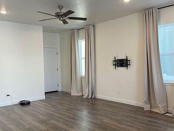 We currently live here, but are willing to move sooner rather than later House has a water softener 1 gb fiber internet and HOA included, all other utilities not included We will have sprinklers and sod installed next spring All furniture will be removed except the tv mount, curtains, and curtain rods Located in Eagle Mountain, near city center Finished being built in Dec 2021 About 2,750 sq ft Pets allowed with no additional pet fee No smoking Deposit is $1000 Application fee is $100 per adult I haven't finished packing so pictures are incomplete. I will update them when I can. Renter is responsible for all bills (electricity, water, sewer, trash, gas, etc) and mowing lawn. 12 month lease