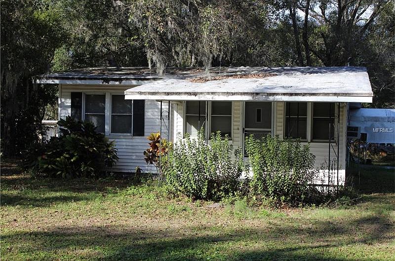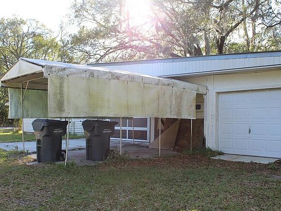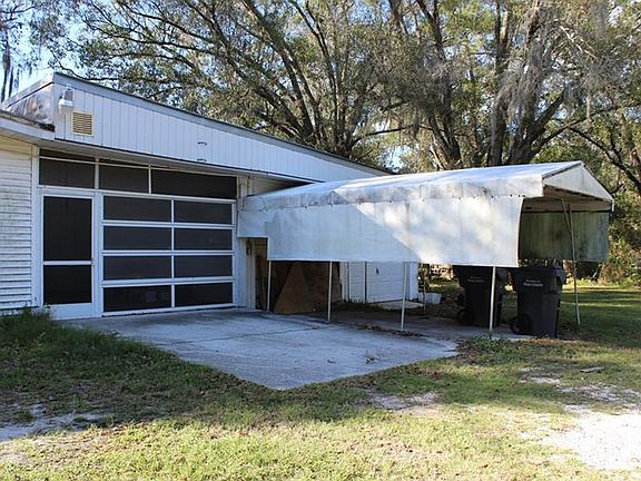 Two bedroom, one bath home with office/den. Kitchen appliances included. Screen room is size of one car garage with garage door style screen door. Inside two car garage is workshop space, tool room, and laundry area. Washer/dryer included in sale. Screen room and garage area total 953 sq ft. Outside covered parking are for single car in front of one of the garage doors. Oak trees in back yard. Property is being sold AS-IS.