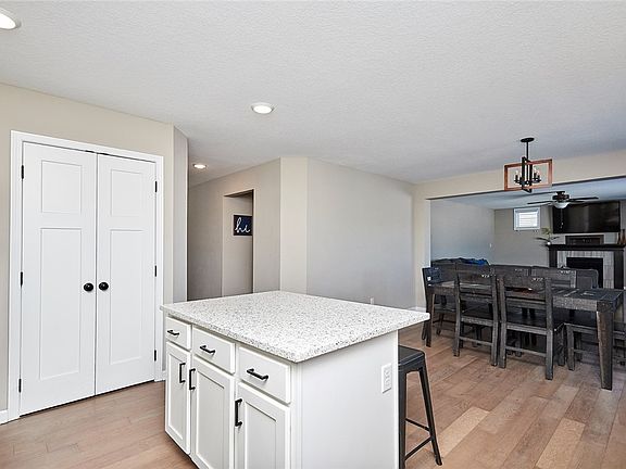 a large great room with gas fireplace and opens perfectly to the spacious eat-in kitchen for entertaining. The kitchen has quartz