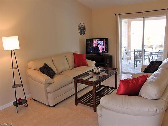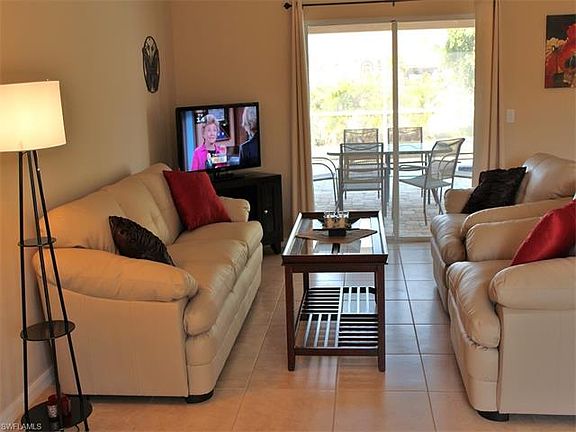 This very nice 3 bedrooms, 2 bath, 2 car garage. Home is situated on an oversized corner lot located in a very desirable area only a few minutes away from shopping and restaurants, but is located on a quiet street with beautiful views from the lovely pool. All the rooms are beautiful furnished and decorated. The House features tile in the living area, kitchen and baths as well as carpet in the bedrooms. The kitchen has a large island and shines with stainless steel appliances. Both bathrooms have new tile, new vanities, faucets and matching mirrors. The two car garage has a painted floor, the finished driveway completes the clean look from the front. The back of the home has a under-truss lanai and a beautiful pool with enclosure. The lovely back yard has palms and trees all around to provide additional privacy.