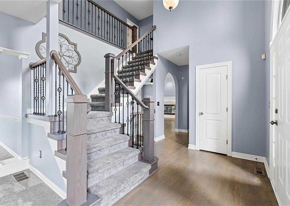 Take advantage of this great price improvement! This is a must see McGovern Built home in Stoney Creek. Settle into your new 5 bedroom, 4.5 bath home, offering ample space to host friends and family for all events. With updates throughout, you can enjoy modern amenities in a spacious and inviting setting. Hardwood flooring in the kitchen, dining and family room, plush new carpet on the main and lower level. The walk-out basement is the perfect spot to host all your favorite Kansas City sporting events featuring a wet bar for easy entertaining. Whether it's game nights or family gatherings, this home provides the perfect backdrop for making lasting memories. The open layout and well-appointed rooms offer plenty of space for relaxation and luxurious living. With its ideal location and ample features, this home is a true gem for those desiring both comfort and entertainment. Don't miss the opportunity to make this incredible property your new home sweet home!