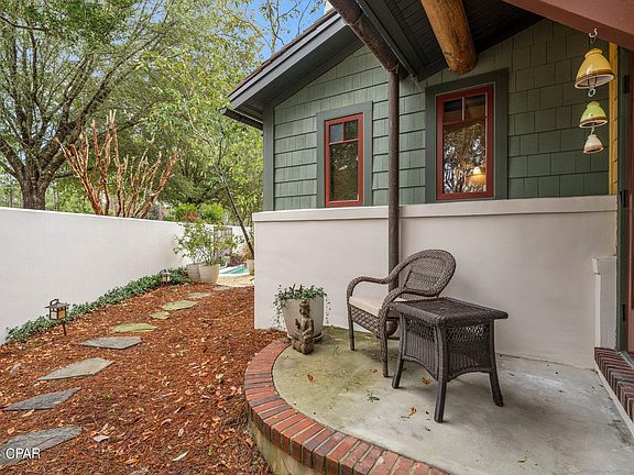 A rare find at 1313 Salamander Trail, tucked behind a privacy wall and lush landscaping with a private, wooded backyard. Enjoy days by the pool and evenings on the patio. This 4 bedroom home offers plenty of space for entertaining and living. The primary bedroom offers a large open floorplan and an updated bathroom with a tile shower and soaking tub. Hardwood floors throughout the main living space and new carpet in the upstairs bedrooms. Additional space off one of the bedrooms has been utilized as a small workout area. Wild Heron is a coastal sanctuary with resort style amenities. Surrounded by lush landscaping & lots of wildlife. Home to the award-winning Sharks Tooth golf course, accessible with a Watersound Club membership. Just a short drive to ECP airport, 30A and Pier Park. LOCATION LOCATION LOCATION!!