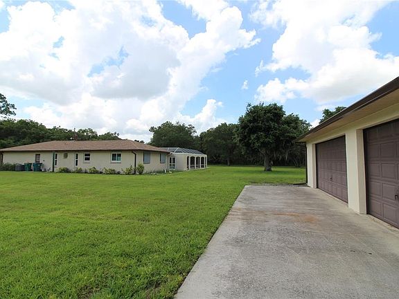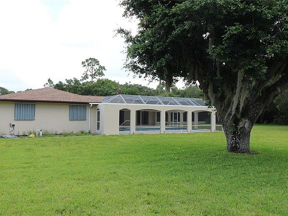 This home is special. Three bedroom, two bath Pool home with attached 2 car garage and detached 5 car garage, all sitting on 3 lots, just over one acre. NO HOA. NO FLOOD ZONE. The house does need some remodeling, but has a new roof in 2021, detached garage new roof, 2022, 11 hurricane windows installed 2018 and new pool enclosure 2013.