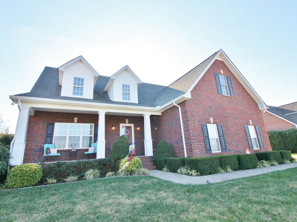 Beautifully maintained all brick home with amazing views out front and really private back yard w/ covered porch and hot tub! Hardwoods in living areas, soaring ceilings, crown moldings and fireplace! All Siegel schools! Good sized 2 car garage with bonus room above. Tastefully updated over time! Spotless home to be seen! All appliances stay!