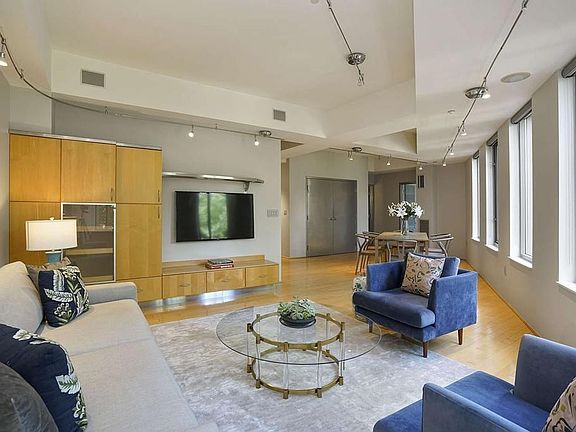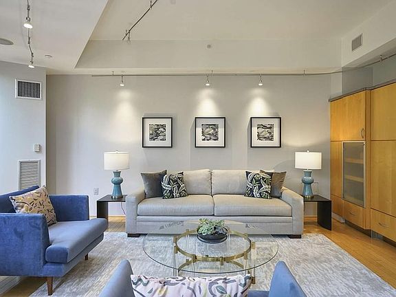 Bathed in sunlight this coveted corner 2+ bed/2 bath home was completely renovated in 2021 and features walls of windows with both East and West exposures. New open floor plan with custom cherry cabinetry in all rooms, gas fireplace, three HVAC zones/mini-split AC heat pump. Open floor plan: new kitchen bridging sunny breakfast room and formal dining room adjacent to main sitting area, unblocked view from large outdoor terrace to Peter's Park. New kitchen: LG dishwasher, Thermador Professional gas oven and gas cooktop, Subzero refrigerator, under-counter microwave, massive center island and peninsula. Adjacent sitting area with fireplace. Master bedroom area boasts large sunny sitting area with desk and cabinets, an en suite bath featuring double sink, and walk-in shower, three oversized custom closets, walk-in closet, leading to a separate home office and step out onto your exclusive oversized landscaped terrace to complete the space. Second bedroom with custom wall of closets overlooks Peter's Park. Luxuriously appointed second bath with spa quality finishes, large capacity LG laundry. Spectacular common roof deck with unsurpassed city views. Easily accessible upper garage tandem parking space included with easy access from condo.