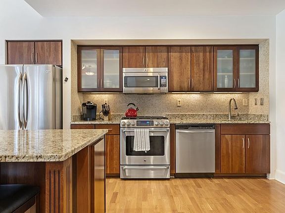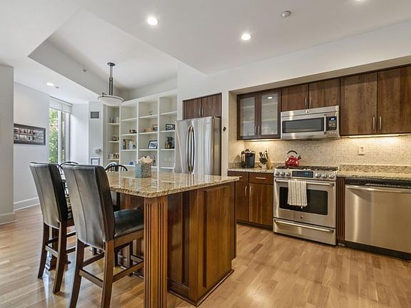 One bed, one bath at Wilkes Passage building. The stand out home boasts a gracious open living area. The kitchen's oversized center granite island, stainless appliances & gas cooking. The living room/dining room is accented by a wall of front&north facing windows, upscale lighting throughout,high ceilings & hard wood floors. Additionally, a full bath with custom vanity,ample closets, central a/c &washer/dryer in the unit. Wilkes Passage is an established full service complex with 24 hour concierge,elevator, stunning common court yard and roof top spaces.