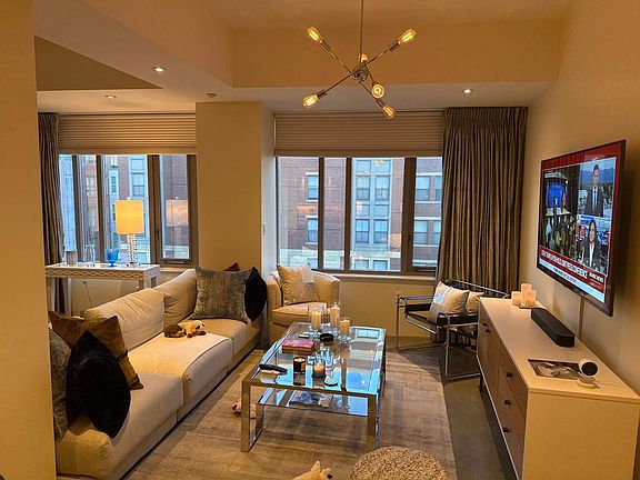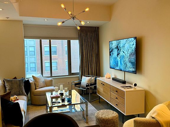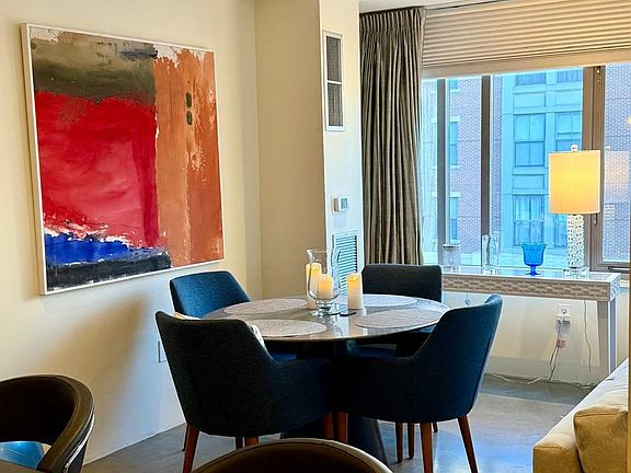 Exceptional is what you will be thinking the minute you open the door. This 1B/1B, 900 sqft unit is impressive with its easy access to a huge common patio with seating and lounge areas to socialize or be able to work outside. Or do you prefer a massive roof deck with spectacular city views? Large, deep, custom entry coat closet has floor-to-ceiling storage. The 10' ft-long kitchen island has massive storage its entire length on both sides and seats for 4. The 9+ ft ceilings in the living area make it feel even more open and spacious. The bedroom is extremely generous with room for ample furniture and has an oversized closet. The wall of windows faces South/East providing abundant natural light. Gas cooking and easily maintained and polished cement floors in a Pet-Friendly bldg. All lights are on dimmers and designer wall finishing is on the entryway, w/d in the unit, and a ceiling fan is installed in the bedroom. Bldg has a 24/7 concierge with a location not to be missed. Move-In Fees: First Month's Rent $3150 Security Deposit $3150 Note that this unit is part of a condo association and therefore all tenants will be expected to abide by association rules & regulations. Building management move in/out procedures and fees do apply; inquire for details.