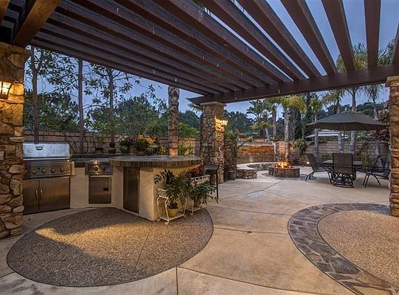 Vista Santa Barbara with excellent curb appeal & highest quality upgrades. Just have whole house painted! The home features beautiful cherry wood floors, stone facade carried into interior, creating a war & inviting ambiance. Large kitchen open to Family room with views to the beautiful backyard with outdoor kitchen, fire ring and beautiful wall fountain. The yard is a perfect retreat for spending time at the end of the day. Full BR/BA downstairs plus powder room. Upstairs includes a large master retreat, 3 other BR's & 2 BA's, enclosed loft & laundry room. Award-winning schools in the Del Mar Union and San Dieguito Union High School District.