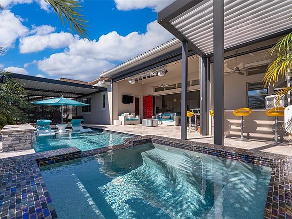 Welcome to luxury living in the heart of **Lake Nona’s premier golf community—Eagle Creek!** This exceptional **4-bedroom, 4-bathroom** residence blends modern design, comfort, and resort-style outdoor living in one of Orlando’s most desirable gated neighborhoods. From the moment you arrive, the home impresses with its upgraded **double front doors**, soaring **12-foot ceilings**, elegant **8-foot interior doors**, and bright open-concept layout. The gourmet kitchen is a showstopper—featuring premium cabinetry, designer countertops, a beautiful backsplash, solid-wood shelving, stainless-steel appliances, dual convection ovens, a built-in cooktop, and a large center island perfect for cooking or entertaining. The spacious living and dining areas create the perfect flow for family gatherings and entertaining. The luxurious primary suite is your private retreat, offering double barn doors, a spa-inspired super shower, split vanities, and a walk-in closet with wall-to-wall upgraded shelving. Step outside and experience your own **backyard oasis**! Enjoy a **saltwater pool** with electric heater, travertine paver deck, professional tropical landscaping, and a fenced 70-ft wide lot. The aluminum pergola includes **automatic rain sensors**, and the outdoor movie theater, enhanced lighting, and resort-style outdoor kitchen make this yard a true entertainer’s paradise. This home is packed with premium upgrades: whole-house dehumidifier, medical-grade A/C filtration, 3M security film, extra attic insulation, designer pantry, smart-home thermostat and lighting, app-controlled pool and garage, and a state-of-the-art security system. The oversized **3-car tandem garage** with acrylic flooring adds both function and luxury. Living in Eagle Creek means enjoying a world-class lifestyle. The community offers a championship golf course, clubhouse, restaurant, multiple pools, tennis courts, fitness center, playgrounds, walking paths, and the highly rated **Eagle Creek Elementary School** located right inside the neighborhood. You’re also just minutes from **Medical City, Nemours, VA Hospital, top dining, shopping, Lake Nona Town Center, and Orlando International Airport.** This home is the perfect combination of elegance, comfort, and Florida resort living—inside a community known for prestige and convenience. **Homes of this caliber rarely come to market.** Schedule your private showing today and discover the luxury lifestyle waiting for you in Eagle Creek!