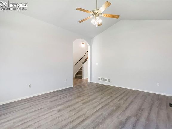 READY TO MOVE IN NOW! NEW LVT! NEW CARPET! Welcome to this fantastic home in the heart of Woodmen Hills! Lovingly maintained since it was built, this 4-bedroom, 4-bathroom home offers comfort, space, and an excellent location with an easy commute to anywhere in town. Featuring vaulted ceilings and multiple living or dining areas, the flexible floor plan offers a variety of options to fit your lifestyle. The main level includes a bright front living room that can easily serve as an office or formal dining space, an updated kitchen with stainless steel appliances, and a cozy eat-in dining area. Just a few steps down is a spacious family room and convenient half bath. Upstairs, you’ll find a generous primary suite with a walk-in closet and private en suite bath, two additional bedrooms, a full bath, and a laundry room for added convenience. The finished basement offers a large rec room, a fourth bedroom, and another full bath. Enjoy the benefits of new luxury vinyl flooring in the main living areas and bathrooms, along with new carpet throughout the rest of the home. The fully fenced backyard is large and flat, ideal for entertaining or relaxing. A/C and a slightly oversized 2-car garage complete the package. Don’t miss this beautiful, move-in ready home.
