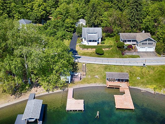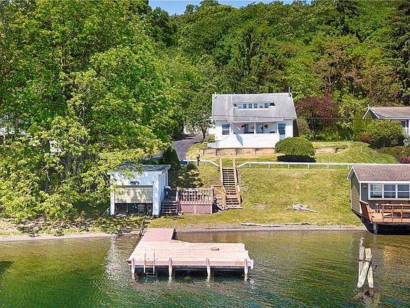 Very well maintained craftsman style home on Keuka Lake's west side. Over 2200 square feet of living space in this year-round lake home! Spectacular view of the Bluff from the front porch. Relax on your own beach, permanent dock or lakeside deck and store your water toys in the boat house. Many updates including brand new paint throughout, LVP floors in Living and Dining rooms, new septic (2024) updated landscaping, retaining wall. New stairs to beach. This 4-bedroom home