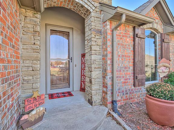 Welcome to this stunning 4-bedroom, 2-bathroom home nestled in a quiet cul-de-sac in Choctaw. As you step inside, you'll be immediately captivated by the vaulted ceilings, creating an atmosphere of spaciousness and elegance. The heart of this home is the inviting living area, featuring a cozy fireplace that's perfect for entertaining guests or enjoying quiet evenings. The open floor plan allows for easy flow between spaces, making everyday living a breeze. The well-appointed kitchen features stainless steel appliances, including a professional-grade 6-burner gas cooktop, sure to delight any culinary enthusiast. For added versatility, a study or formal dining area provides options to suit your lifestyle. Upstairs, the fourth bedroom could easily serve as a bonus room, offering flexibility for various uses. Step outside to discover a wood-burning fireplace, ideal for year-round outdoor enjoyment. The backyard features a storm shelter for peace of mind during severe weather. This property combines comfort, style, and practicality in a desirable location, making it an excellent choice for those seeking a move-in ready home with ample space and modern amenities.