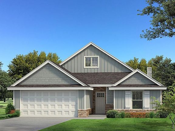 This Kamber floor plan includes 1,905 Sqft of total living space, which includes 1,750 Sqft of indoor living space and 155 Sqft of outdoor living space. This charismatic home offers 3 bedrooms, 2 full bathrooms, covered patios, a utility room, and a 2-car garage with an in-ground storm shelter installed. The living room presents a coffered ceiling with a ceiling fan, wood-look tile, a corner gas fireplace surrounded by our elegant stacked stone detail, Cat6 wiring, and 3 large windows. The high-end kitchen supports a large center island, stunning pendant lighting, custom-built cabinets to the ceiling, stainless steel appliances, decorative tile backsplash, 3 CM countertops, and a large walk-in pantry. The large primary suite spotlights a sloped ceiling detail with a ceiling fan, windows, and our cozy carpet finish. The prime bath offers a free-standing tub, a dual sink vanity with framed mirrors, a walk-in shower, a private water closet, and a HUGE walk-in closet! The covered outdoor living supports a wood-burning fireplace, a gas line, and a TV hookup. Other amenities include our healthy home technology, a tankless water heater, R-44 insulation, a whole home air filtration system, and so much more!