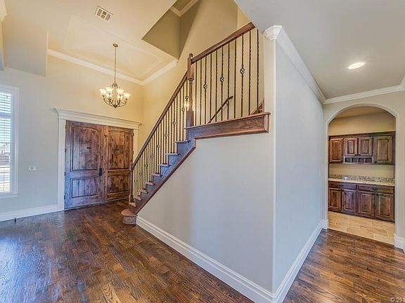 Marshall Plan on Corner Pond Lot. 2 Bds, Full Bth & Game w/Wet Bar Up, Distinguished Finishes Including Double Front Doors, Custom Cabinets, Exotic Granite, Study w/Built-ins, & More.16 SEER AC, 95% Efficient Furnace, Spray Foam Insulation, Low-E Windows.