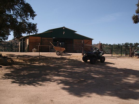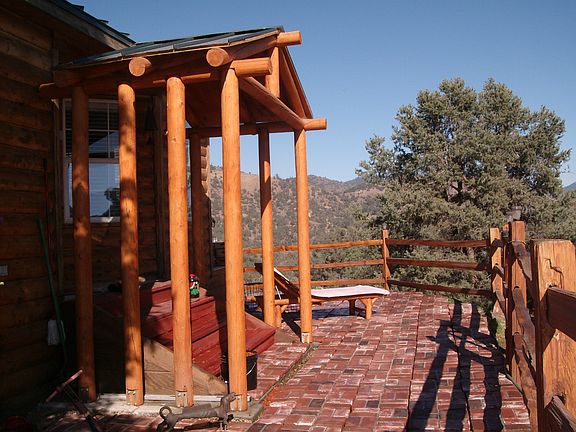 Silvercrest Log Cabin w/ green metal roof and matching $30,000 CastleBrook 6 stall barn (accommodates dually truck) Pasture opens to stalls w/ drinkers and mats. Polaris ATV & Newer Spreader included. Private 480' deep well, 20 ac. w/views out every window. Central HVAC, wood burning fireplace, soaking tub MB, used brick decking, hot tub, swing & putting green. Some deco. items included, i.e. Carosel horse. Riding arena w/ 360 view (could put 2nd house there) Ride year round off your property. Bordered by Sequoia National Forest and BLM. 7mi. to Pacific Crest Trail, 4500' elevation, 4 seasons. Horses, LQ Silverlite horse trailer & Chevy TurboDiesel 4WHDTruck, optional. NOTE: "Zestimate" does not value the acreage, the well (at $50. ft)power to the house from the road, grading, etc. Could not build same for less. 661 867-2577 Cell 661 433-5307