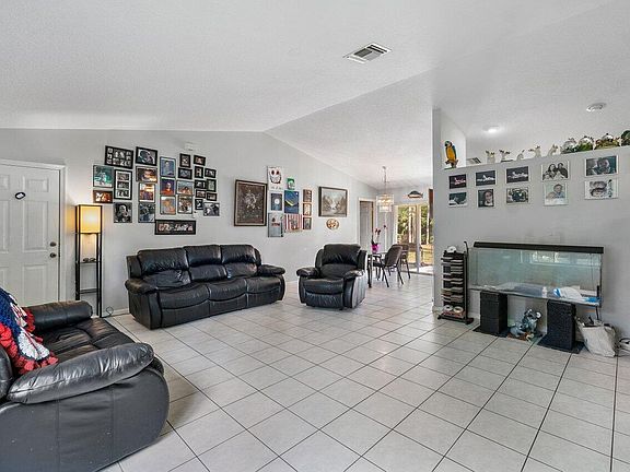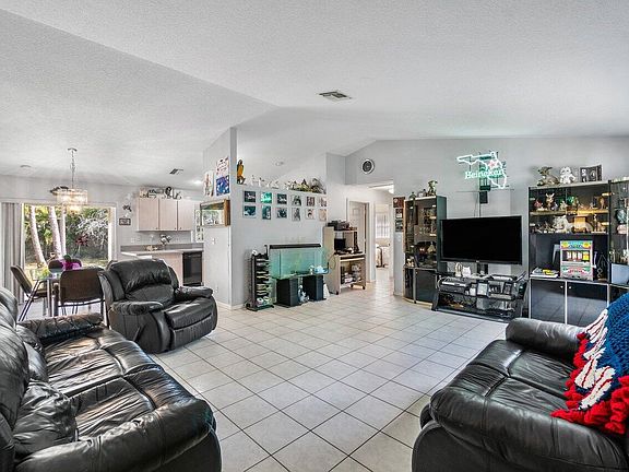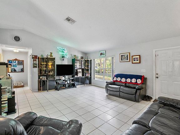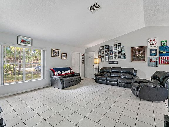 Country oasis near all the amenities ''city'' has to offer! Highly desirable Acreage location. Original owner maintained CBS 3/2 w/ 2 car garage. You will love the soaring vaulted ceilings and huge family room perfect for large family gatherings! Kitchen is adjacent w/ peninsula ''island'' and ample cabinet space. Window above the sink lets in the beautiful private 1.15 acre yard. Fenced in yard and gate at driveway. Quiet street. Bring your work vehicles, RV's, ATV's, motorcycles, pets, hobbies...almost anything goes. Complete set of hurricane shutters included. New water system 2021. New water heater 2018.