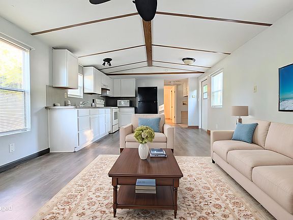 Welcome to this charming 2 bedroom 1 bath manufactured home. This cozy property offers a comfortable 728 sq ft of living space with easy-care tile and laminate flooring throughout. Enjoy a bright living area, a practical kitchen layout, and split bedrooms for relaxing comfort. Outside, the large lot provides ample room for parking, outdoor activities. With its convenient access to US-19, shopping, dining, and local beaches, this home offers the perfect balance of comfort and convenience. Ready for immediate move-in. Schedule your showing today. Some photos are virtually staged.
