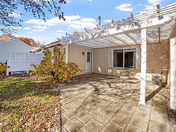 Enjoy abundant natural light from the south-facing windows, overlooking a natural berm and mature evergreens that provide outstanding privacy. Out back, relax beneath the maintenance-free vinyl pergola that shades the lovely private patio, your own serene outdoor retreat. And...a BRAND new roof!
