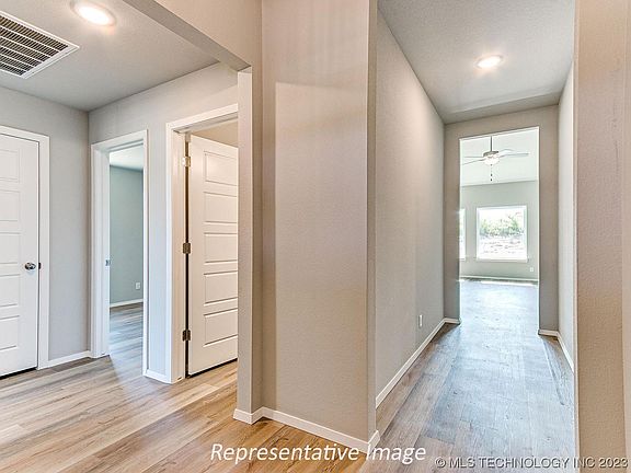 Sawyer - 4/2.5/2 - 1 story - Crisp white painted brick w James Hardie siding accents. Open plan w 12 ft vaulted ceiling w wood beams & chandelier. Kitchen designed with; wood vent hood, painted cabinets, white subway tile backsplash, large island, granite countertops, chrome hardware & pendant lights, large siligranite sink, & stainless appliances. Master w ensuite bath & absolutely huge vaulted walk-in closet. LVP wood floors throughout. Covered back patio. Comes fully fenced. Ask about our $20k Incentive!
