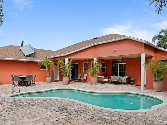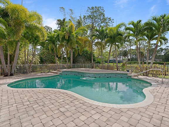 Beautiful 1-story Mediterranean style house, just built in 2006 on 1.3-acre mostly fenced lot that backs to canal (which provides water for sprinkler). NO pond, so you can enjoy your entire nicely landscaped lot. Heated saltwater pool on large brick paver patio. Tall cathedral ceilings. Kitchen has ''Stone'' counters and backsplash, Stainless-steel appliances, solid ''Maple'' cabinets. Ceramic tile floors in living areas, vinyl and laminate flooring in bedrooms, so NO carpet (great for pets, and easy maintenance). Long brick paver driveways. Indoor laundry room with tub. Epoxy flooring and storage racks in garage. Master has 2 walk-in closets, roman tub, separate shower, dual sinks, vanity. All bedrooms are large. Complete hurricane shutters. Lot is 90% fenced.