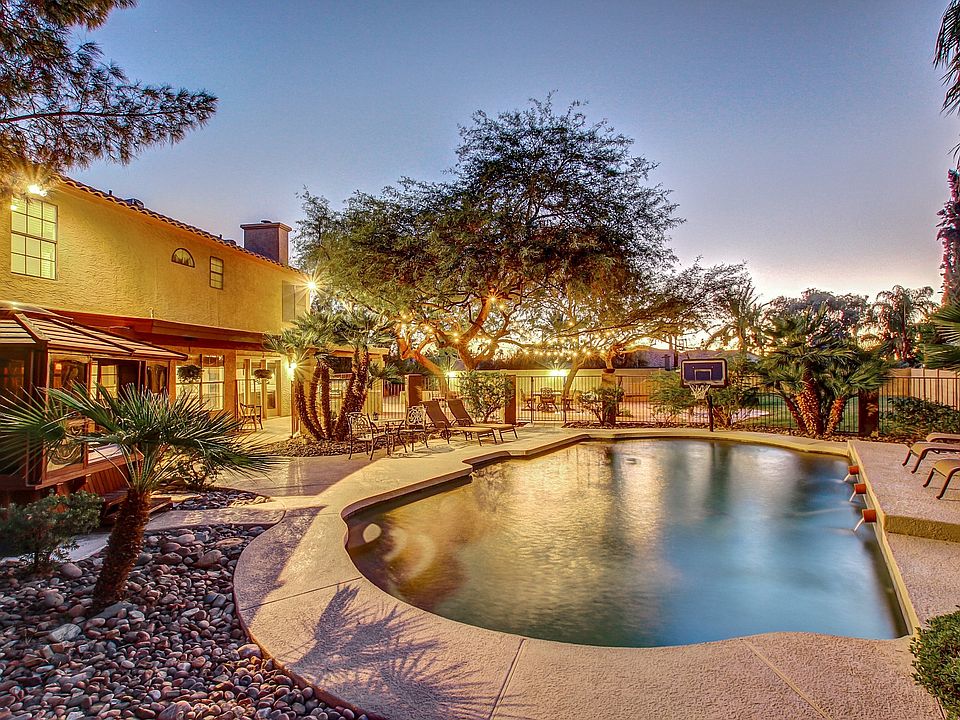 THIS IS HOME!!! Wonderful 5BR+ bonus room/2.5 BATH family home in the popular neighborhood of MountainView Ranch in Scottsdale. Updated kitchen has granite counters, stainless steel appliances and new cabinets. Hardwood flooring throughout the main living areas and LOTS of upgrades and recent improvements have been made. Spacious master suite includes a separate room that’s perfect for office or private den. Everything has been recently updated. Huge oversized lot with newly pebbleteched pool, separate hot tub, firepit, sport court and grassy area — perfect for entertaining and outdoor living!