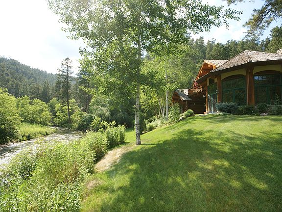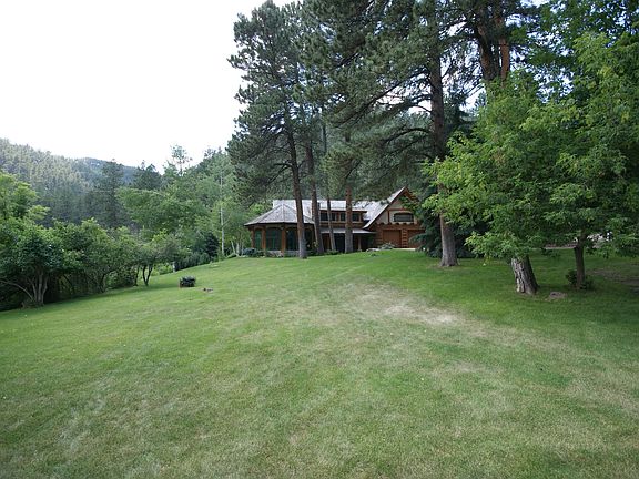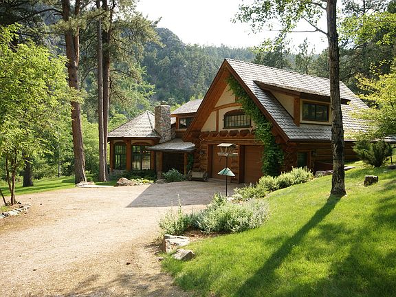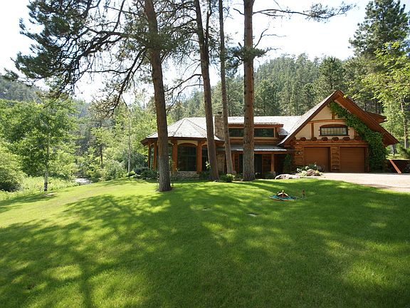 One-of-a kind creekside property on 1.28 acres near the edge of Rapid City. A paved drive leads to the garage, landscaped grounds, home, guest house & shed. Massive logs decorate the home, and the open floor plan with Mexican style paver tiles enhance the style. Spacious kitchen offers granite countertops, stainless steel sub-zero refrigerator, Viking gas stove, center island with vegetable prep sink, and water filtration system. Open beams soar above the dining room where you can enjoy windows that wrap around the space, plus a stone gas fireplace adding a warm ambiance. A second fireplace is in the living room, along with garden doors that lead to the patio & firepit. Upstairs, relax in the master suite equipped with a walk-in closet, private outdoor balcony, and bathroom with jetted tub and tiled step-in shower with skylights. Two more bedrooms & 1 bathroom are on the main floor. The partially finished basement includes a media room, pool room, and some unfinished space that is great for storage. This property also offers a guest house with another bedroom & bathroom, remodeled kitchen, and living room with fireplace. The square footage on this MLS data sheet is a total of 4855 – which is 4245 sq.ft in the main home, and 510 in the guest house. The main house has 3 bdrm 2 bath, and the guest house has 1 bdrm 1 bath.