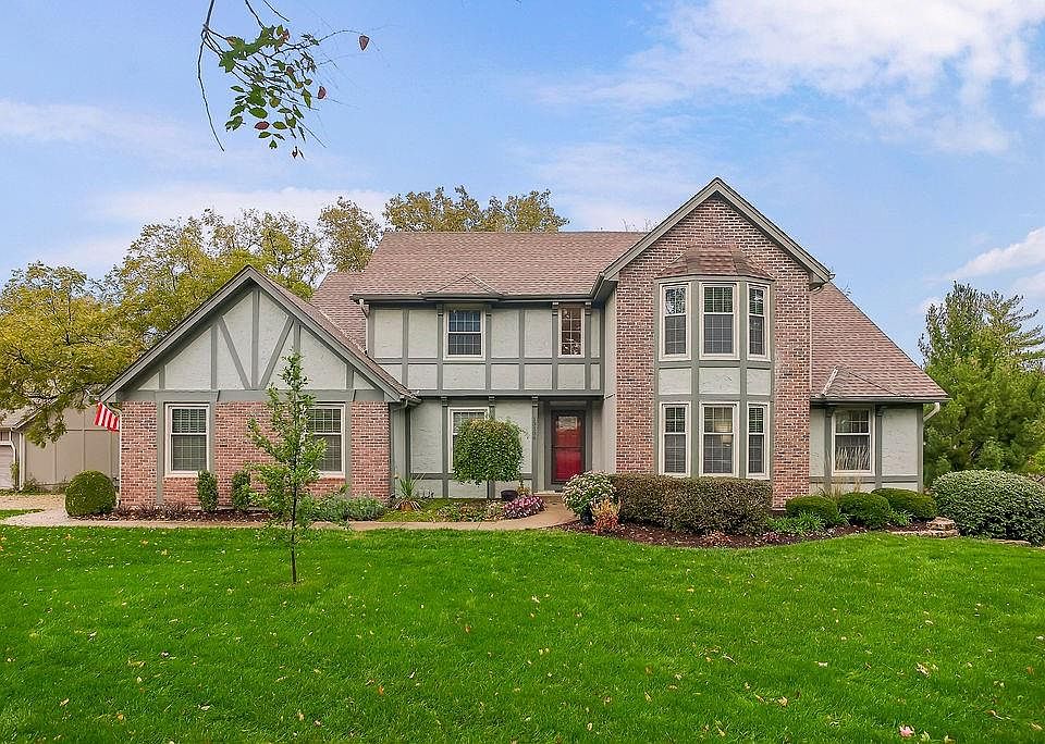 STUNNING! This large Tudor style home is nestled in the trees on a large corner lot in popular Lenexa. Boys with their toys will love the 4 car garages - 2 on the side and 2 in the basement. FIVE bedrooms, Four full baths and two half baths. Large master suite on main floor and also 2nd bedroom, 2nd bath and half bath on main floor. Finished walk-out basement and yet tons of storage!