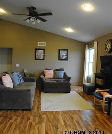 Ranch walk-out on 1 acre lot w/extensive landscaping. Open floor plan, vaulted ceilings. Large eat-in kitchen, all appliances remain. Deck off dining area. Main floor laundry, master bath. Very nice!
