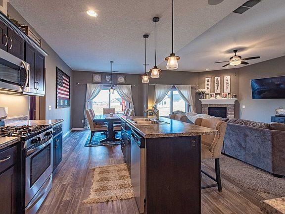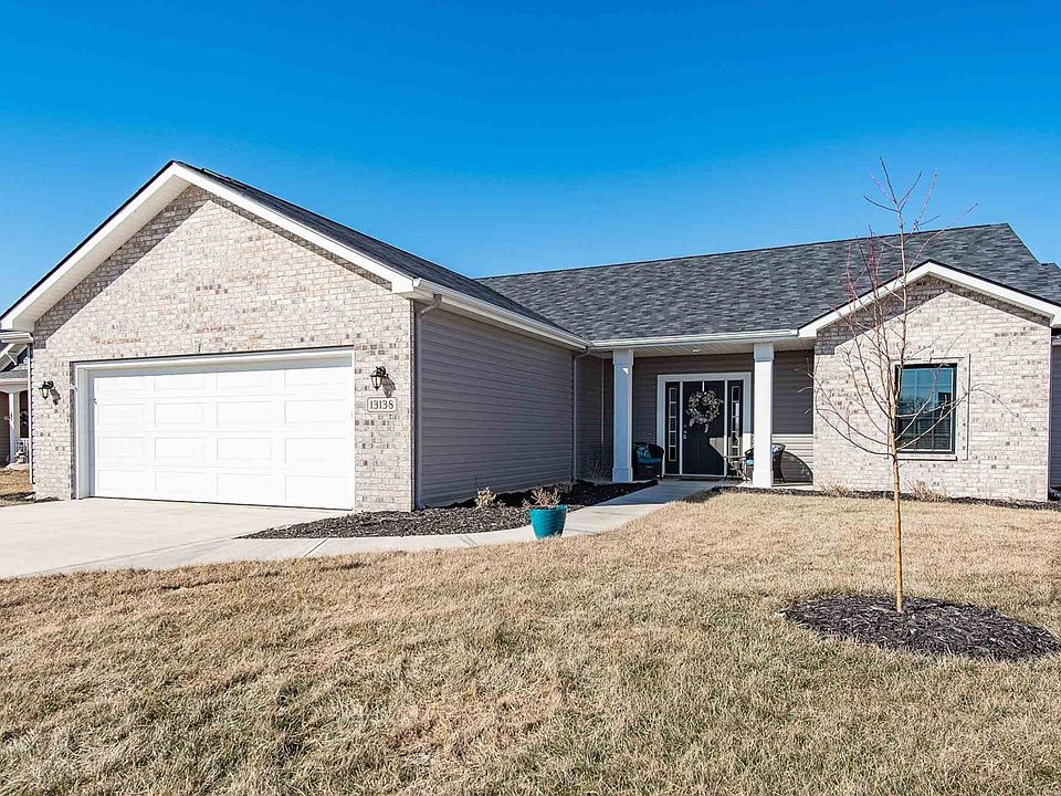 **Eligible for 0% [ZERO] Down USDA Financing**Do not miss this nearly NEW Aboite Luxury Ranch. Step through the columns of the front porch and into & under the 9' ceilings of this wonderfully cozy yet spacious Great Room ~ where both views of the Pond and the warmth of the Fireplace can be enjoyed. The Living Space flows into an Open Kitchen appointed with stainless steel appliances, a 6' eat-in island, and chic Farmhouse style lighting. A spacious Dining Area offers splendid views of the backyard and is just steps from the outdoor patio. The Home is perfect for both Relaxing & Entertaining - head outside to enjoy a beverage & views of the sunset over the water or stay in and play some tunes through the built-in surround sound. The large Master en Suite features tray ceilings, ample walk-in closet space, and a Master Bath fitted with a double vanity & walk-in tile shower with rainfall shower-head. Bedrooms two and three, both adorable in their own right, flank the Homes 2nd Full Bath. The over-sized Garage provides ample space for parking with a large bump out for the lawn equipment and/or toys for the children & adults alike. The Home is located in the highly sought after Southwest Allen School District and just minutes from convenient dining, shopping, and highway access. This One-owner Home was built with love, has been meticulously maintained, and still shines like NEW.