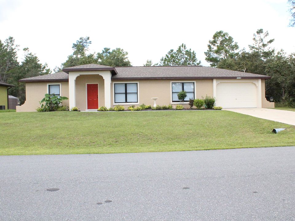 MUST SEE!! Adorable home recently remodeled. Everything is NEW! New Roof, AC, water heater, garage door opener, tile and laminate flooring, kitchen cabinets, bathroom cabinets, all doors, hardware, lanai screen, landscaping, plumbing and electric fixtures, French door to lanai, stainless appliances,garbage disposal, ceiling fans throughout the house. Nice open backyard that backs up to greenway. Large screened lanai 12'x23'. New paint inside and out. Brand new washer and dryer.