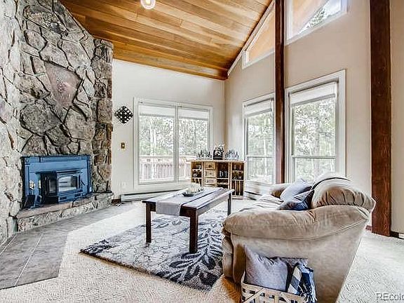 Private & quiet mountain home just minutes from Hwy 285 and a short commute to Denver from beautiful and coveted Pine Junction. Bright & open floor plan with moss rock fireplace that's been recently cleaned and serviced. Outdoor grill attached. Floor to Ceiling windows allow light in all day. Kitchen remodel in 2006 boasts granite counter tops and island, beautiful shaker cabinets, stainless steel appliances & custom tile back splash and hardwood floors. Enjoy your tea on the front porch in the morning, listening to the birds chirp or sip a glass of wine on your rear deck in the afternoons. Brand new Bryant (Bryant 95 percent efficient furnace with 80k Btu) natural gas furnace with manufacturers warranty. Supplemental electric baseboard heat if needed. Septic system serviced and certified and will be pumped on 7/3. Hot water heater flushed and serviced and ready for you to enjoy a hot shower. A private concrete pad is conveniently located, wired and ready to receive your hot tub for starry nights. Gorgeous mountain views from the master bedroom as you step out of the brand new french door to your balcony! Oversize two car garage w/newer garage doors for your vehicles and toys w/asphalt paved driveway. Private living space with private outside access in lower level for a potential income property or man cave. Move in ready. Many items in home available for sale, just ask!