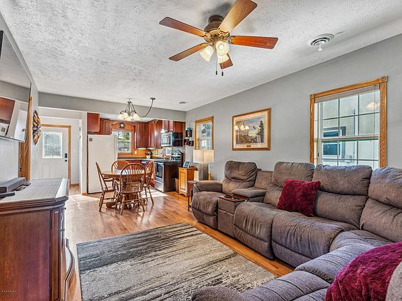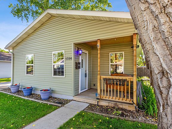 Welcome to this beautiful home with many newer features! Recent renovations include siding, windows, plumbing, and electrical systems—just to name a few. Inside, you'll find a well maintained interior with laminate flooring throughout the living room, dining room, and kitchen. Enjoy time on the cute front porch, perfect for relaxation. The kitchen is equipped with nice appliances, offering a contemporary and functional space. The updated bathroom features a gorgeous walk in shower and ample space. This home includes two generously sized carpeted bedrooms, providing comfort and coziness. Home also has central air conditioning, and a tankless water heater. The expansive fully fenced backyard offers ample space for outdoor activities and entertaining. Additionally, the property features a two-stall heated garage, ensuring your vehicles are protected year-round, and a huge storage shed with an overhead door. Don't miss the opportunity to own this delightful, move in ready home!