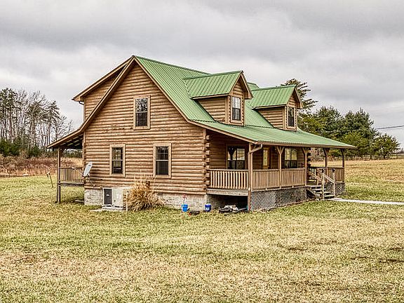 Log Home on 38+ Acres with stocked pond, wooded and cleared, covered front and back porches, if you like the warm feel of natural wood, this has it everywhere, loft overlooking living room, step in shower in master, bench window seat, island in kitchen. trail to the back of the property, wildlife, call for your personal tour today. Pole barn with concrete floor, extra strength footers intended for a carlift.