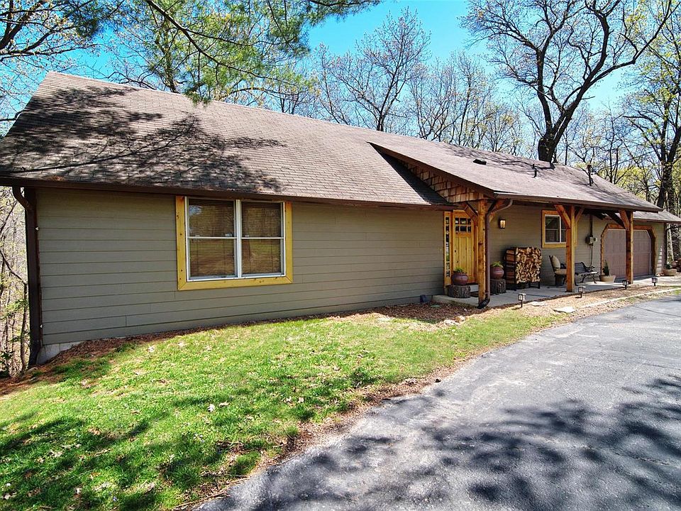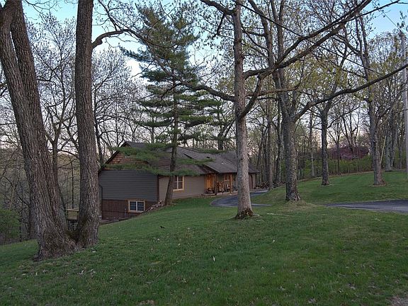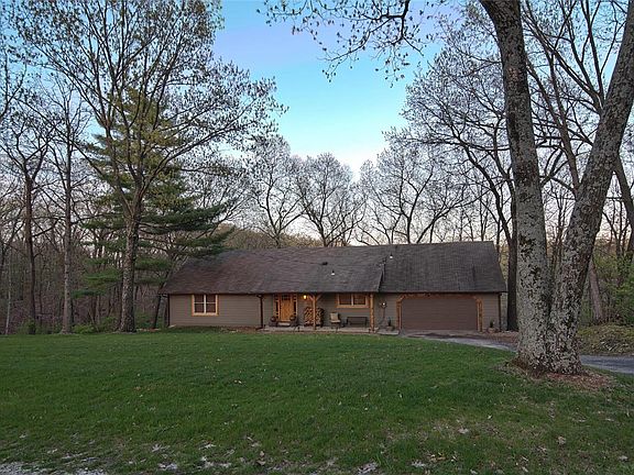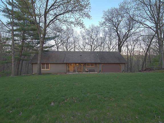 A Cabin in the Woods! For all you mountain lovers who live in Missouri you've found your personal retreat here in Wildwood on 3.2 Acres & hi-speed internet! High-end finishes thruout: pine trim & moldings, solid pine drs, wood flrs thruout main level, a view you can't wait to wake up to, privacy galore, circle drive, hardy board siding, abundance of wildlife, trailheads for walking & biking, minutes from hidden valley ski, minutes to I-44! Almost $150,000 in upgrades in this rustic upscale retreat- Kitchen features high-end hickory cabinetry, concrete counters, large island, all newr appliances-range has double oven, slate backsplash...Open floor plan is amazing w/vaulted ceiling, skylights, stone fireplace w/high-end fireplace insert, open to the new sunrm with a view that goes on for miles, low-e windws, wood flr. Main flr bath- slate shower walls, rain shower head, dual vessel sinks & slate flr. LL bath-concrete vanity w/vessel sink, plus walk-out lower level family rm! See it today!