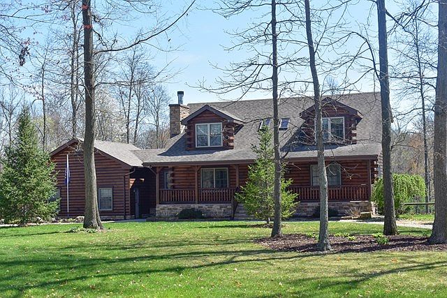Incredible log home built in 2004 with soaring 20 ft ceilings & open floor plan. Private location with 5.373 completely fenced in acres perfect for the animal lover with pastures & woods. First floor master retreat with spacious bedroom, dressing area, walk in closets, & private bath. High end finishes, hardwood floors & hickory cabinets. Attached 2 car garage with separate 40 x 40 workshop that has electric, water & heat, 20 x 20 horse run in. The walk-out basement has an additional 300 square feet of finished living space in addition to tons of storage. The outside wood burner is very economical for those winter heating bills! Convenient location close to Route 30, Hillsdale Schools.