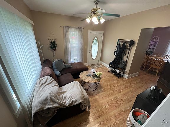 Welcome to this cozy home on a large, fenced in corner lot! This home features an updated kitchen with stainless steel appliances that stay, a separate laundry room with plenty of space, a dining room, living area, and full bathroom all on the first level. Upstairs you will find two spacious rooms. There is extra storage space in the attic and in a room right off the laundry room. Out back you will find a deck - perfect for entertaining, a detached garage with a concrete driveway, and a spacious side yard. This home is conveniently located near Snyder Park, shopping plaza's and I-70. The hot water heater was updated in 2022. Listing agents are related to the seller.