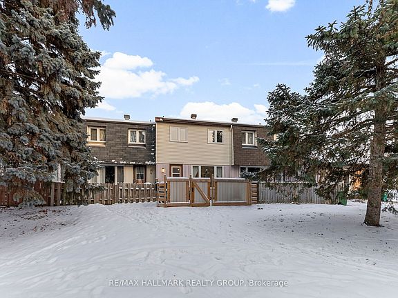 Calling all first-time home buyers, investors, and downsizers! Don't miss this charming, fully renovated 3-bed, 2-bath townhouse ideally located just steps from the LRT station, 15 minutes to downtown, and minutes from the 417. Outdoor lovers will appreciate being only steps from Cedarcroft Park-with its winter ice rink perfect for kids-as well as two additional nearby parks. All amenities, restaurants, and shopping are within walking distance, and Pineview Golf Course is only minutes away. Perfectly positioned on a quiet crescent, this home offers a fully fenced backyard with a patio that backs onto green space and beautiful pine trees, creating a private and peaceful setting ideal for relaxing or entertaining. Flooded with natural light, this turnkey home features an open-concept floor plan, a fresh neutral colour palette, new pot lights throughout and is completely carpet-free. The main level boasts high-end laminate flooring, while the spacious primary bedroom on the second level has been fully renovated with custom built-in organizers. The upper level also includes a 4-piece bathroom and two generously sized secondary bedrooms.Additional updates include an owned hot water tank (2018) and a new dishwasher (2024). A rare , affordable opportunity in a desirable neighbourhood. Don't miss out !