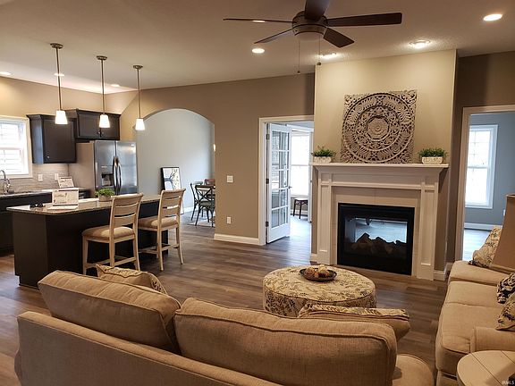 Welcome to The Cottages at Copper Creek. The Cottage Series by Majestic Homes offers 10 floor plans, 5 Exterior color packages, and many wonderful standards that can only be found in the Cottage Series. This home is situated on a beautiful pond lot and offers 1,945 sq/ft of living area, a 759 sq/ft garage, 3 bedrooms, a 2 way fireplace between the Great Room & Sunroom, a dining room, a spacious kitchen w/quartz countertops, Soft close drawers & doors, custom D & B cabinets, and a walk in pantry. The master bedroom offers a trey ceiling w/recessed lighting, a spacious walk in closet with Closet Concepts storage, a tiled walk in shower, and double vanity. Beautiful LVP flooring dominates this home, with carpet in the 3 bedrooms. This home offers all of the standards that Majestic is known for along with minimum threshold entries from the garage and back patio, comfort height toilets, floor plug in the great room, a large laundry room w/a utility sink, a 3 car garage, Curb cut, floored attic storage, Frigidaire Gallery Series Appliances, and more.
