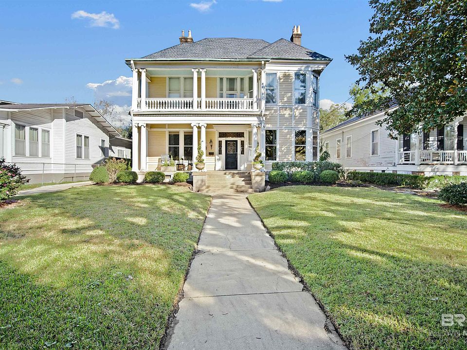 Breathtaking Historical Mobile home that exudes southern sophistication and charm. Built in 1899, this fully restored home sits on just under an acre in the Old Dauphin Way Historic District. The main house has a brand NEW fortified roof, and is 4761 sqft of pure beauty & elegance. The foyer features stunning chandeliers with original marble floors looking to the main stairwell with original intricate detail woodwork, stained glass window, & towering ceiling heights that continues throughout the first two floors of the home. Downstairs features include den, living room, & dining room with fireplaces with unique summer fronts, antique lighting, towering windows, & original hardwood floors. The dining room has details including pocket doors & built-in china cabinet, butler’s pantry with icemaker, wine refrigerator, and copper sink. The kitchen was completely renovated to include custom cabinets, high end appliances including SubZero refrigerator & Wolf range, granite countertops, & backsplash. Downstairs also has one spacious bedroom and full bath. On the second floor, the primary suite is to the right of the parlor area. It includes an office area with summer front fireplace & pocket doors that could easily be used as a 6th bedroom, unique summer front fireplace, walk-in closet, & ensuite bath with dual sinks, custom walk-in shower, vanity area, soaking tub. On the opposite side of the 2nd floor are 2 additional bedrooms & bath. Other features of the 2nd floor include two porches & laundry room. The 3rd floor is the 5th bedroom & half bath. Outside, behind the electric gate is a beautiful courtyard looking to the guest house that the current owners have used as an income-producing AirBNB, 3-car carport with storage, storage shed, & enormous green space that is completely fenced in. It is one of the largest lots in midtown! This historic home is TRULY one of a kind, and you do not want to miss it!Contact your favorite real estate professional to schedule a showing.